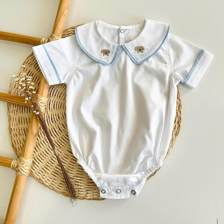 O Body Cachorrinho é uma peça encantadora e atemporal, perfeita para os momentos especiais do seu pequeno. Confeccionado em tricoline branco 100% algodão, garante conforto, leveza e um toque clássico irresistível.