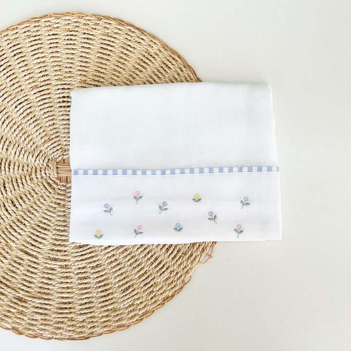 A Fralda Grande Florzinhas é bordada com mini flores coloridas em tons pastel e finalizada com acabamento em xadrez azul claro, criando um visual doce e encantador para acompanhar seu bebê com muito carinho.