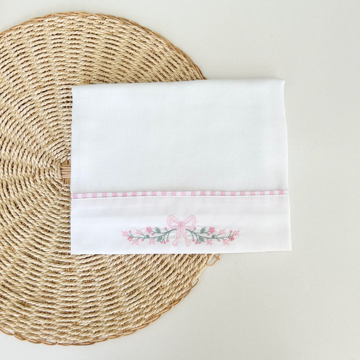 A Fralda Grande Laço Rosa traz o bordado floral com lacinho em tons suaves e acabamento em vichy rosa claro — perfeita para completar o enxoval com charme e funcionalidade.