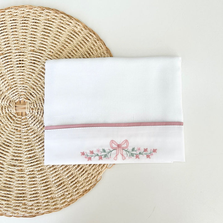 Fralda Grande Bordada Laço Rosê – Ana’s Ateliê