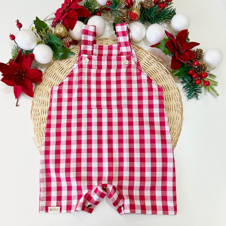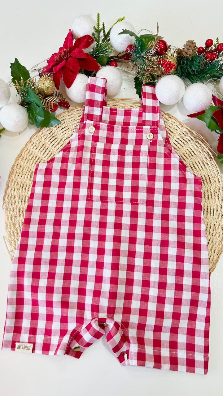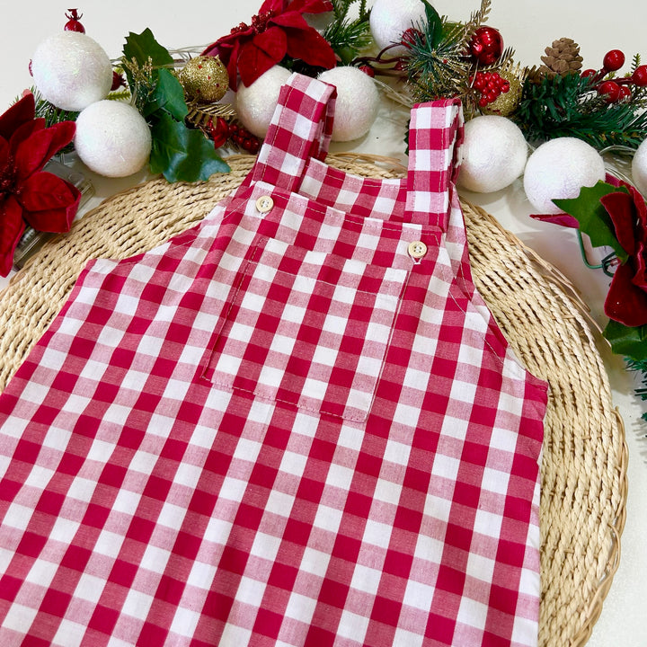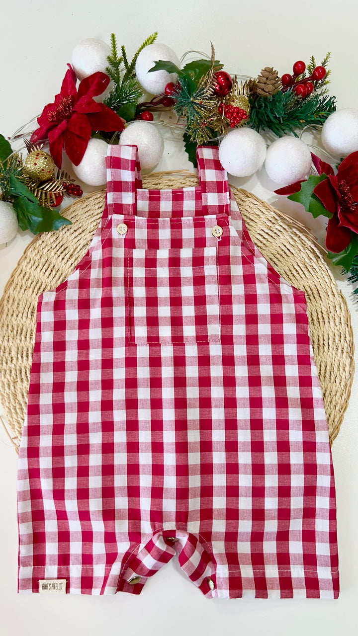 Jardineira Sonho Dourado Xadrez Vermelho - Coleção Magia