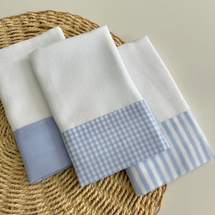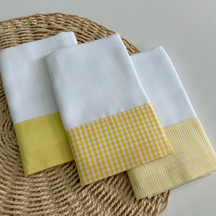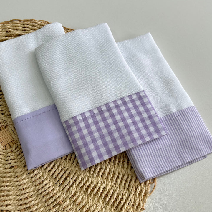 Nosso kit de paninhos de boca em fralda é um item essencial no enxoval do seu bebê! Composto por 3 unidades, cada paninho mede 36x36cm e possui um toque suave e confortável. O barrado em tecido tricoline 100% algodão adiciona um charme especial, garantindo absorção eficiente e muito estilo.