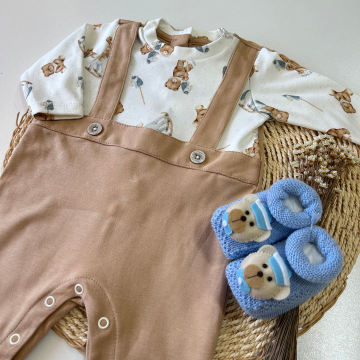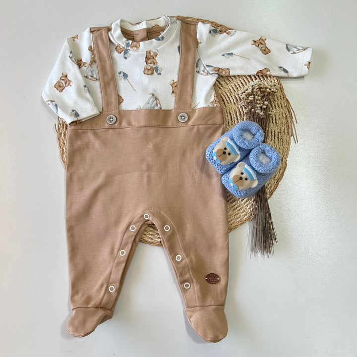 Macacão Longo Falsa Jardineira - Ursinho e Cavalinho