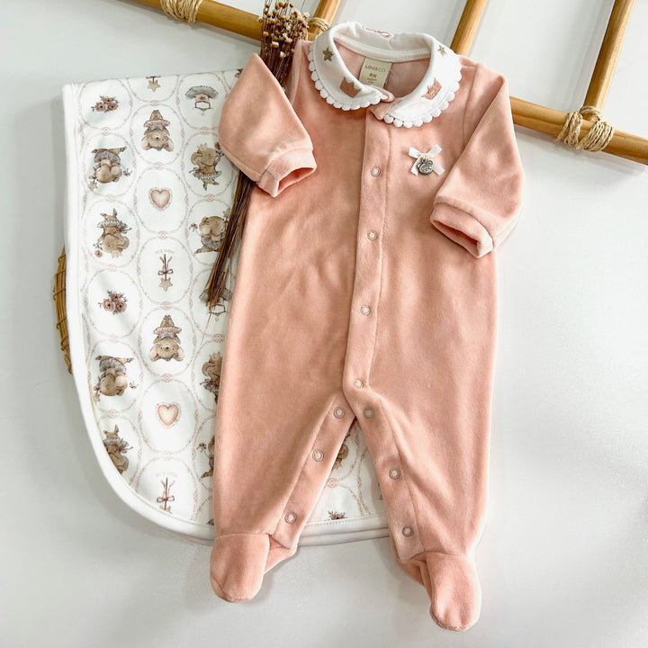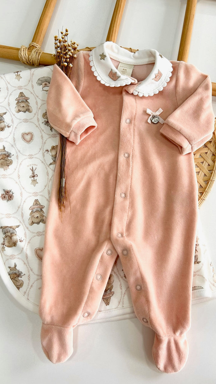 Macacão Plush Rosa com Gola Bordada – Coleção Doçuras da Infância