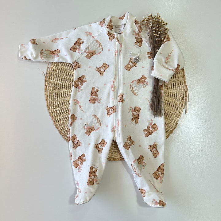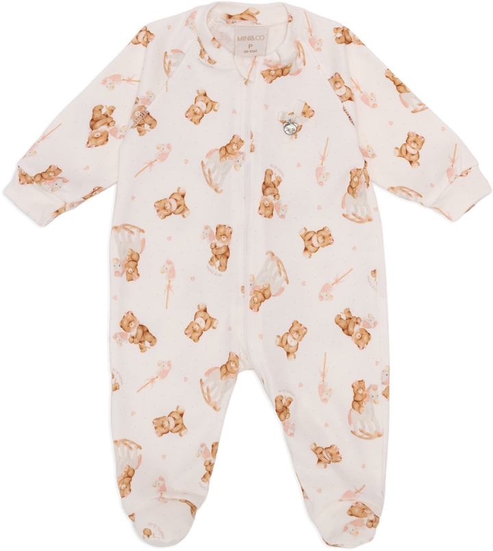 Macacão Manga Longa com Zíper - Ursinha e Cavalinho
