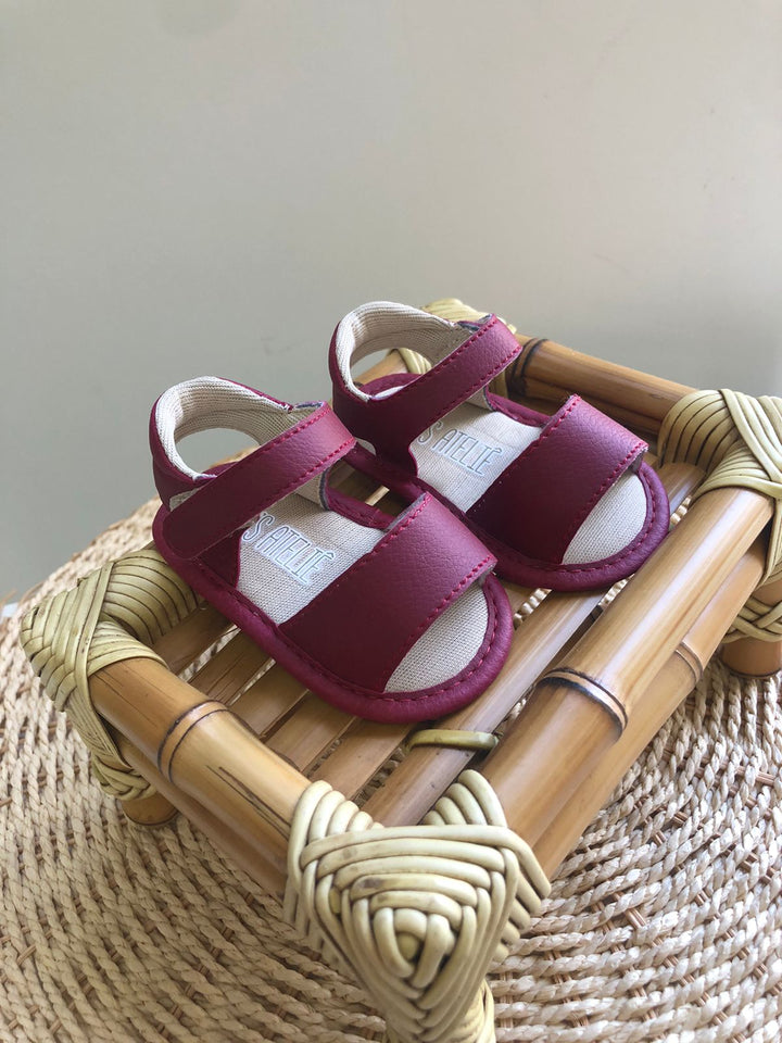 Sandália, na cor marsala, solado super macio, flexível e confortável com fechamento lateral por velcro.