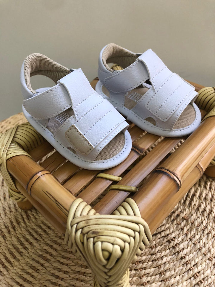 Sandália Velcro Branca e Bege